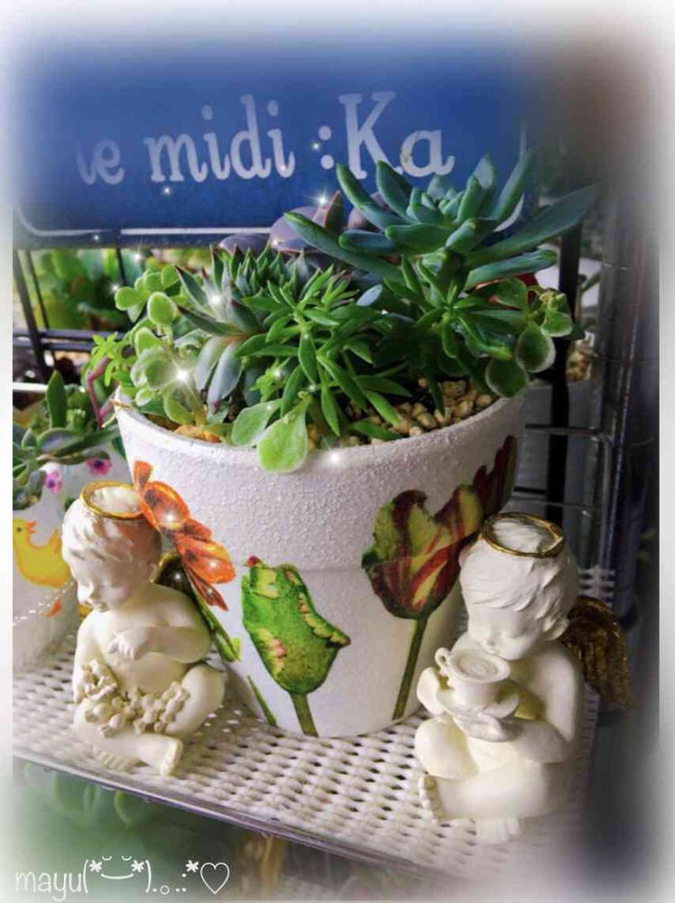 投稿から4年が経ちました𖡼.𖤣𖥧𖡼.𖤣𖥧 お花のアレンジから始まり多肉の寄せ植えそしてリメ鉢作りと…進化して行く中で心地好い空間作りを目指してるウチにCafeOPENまでの流れとなりました☕️ いつかgreensnapの花友さんに会える日心待ちにしてます(*˘ ˘*)*.。💕