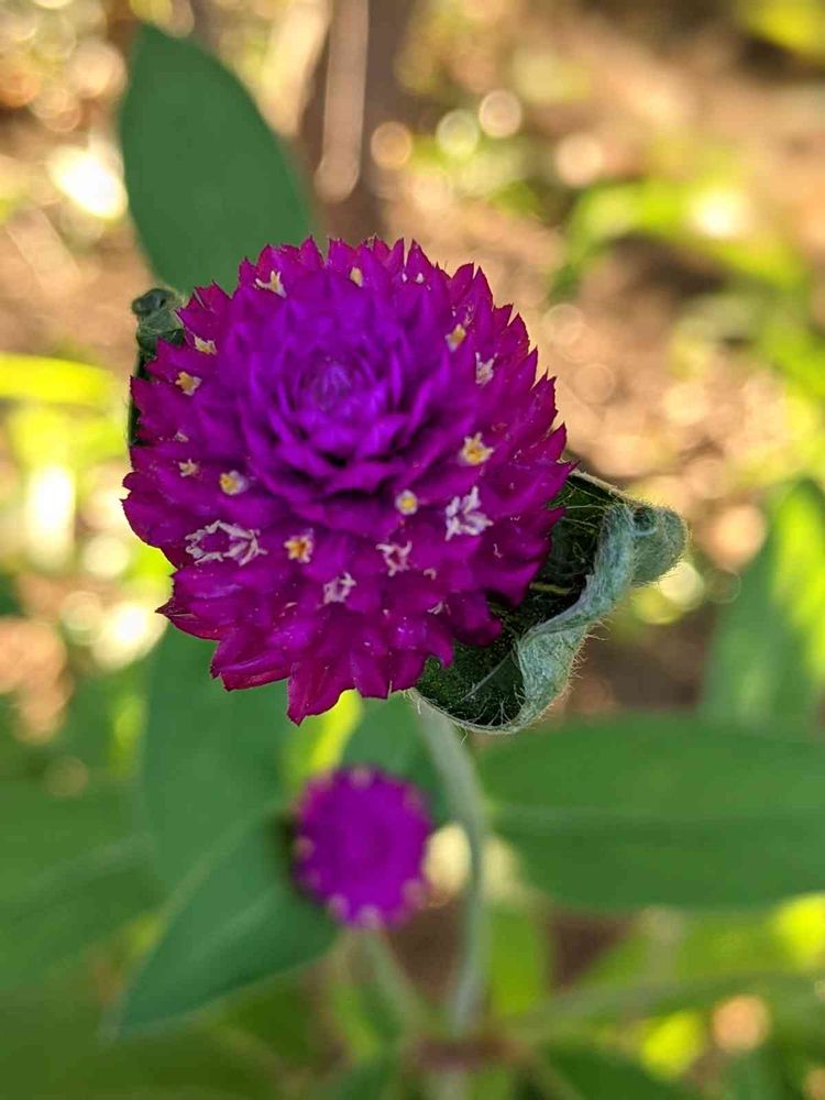 センニチコウの花は紫の部分じゃなく、隙間から覗いてる小さな黄色い子たちなんですね✨