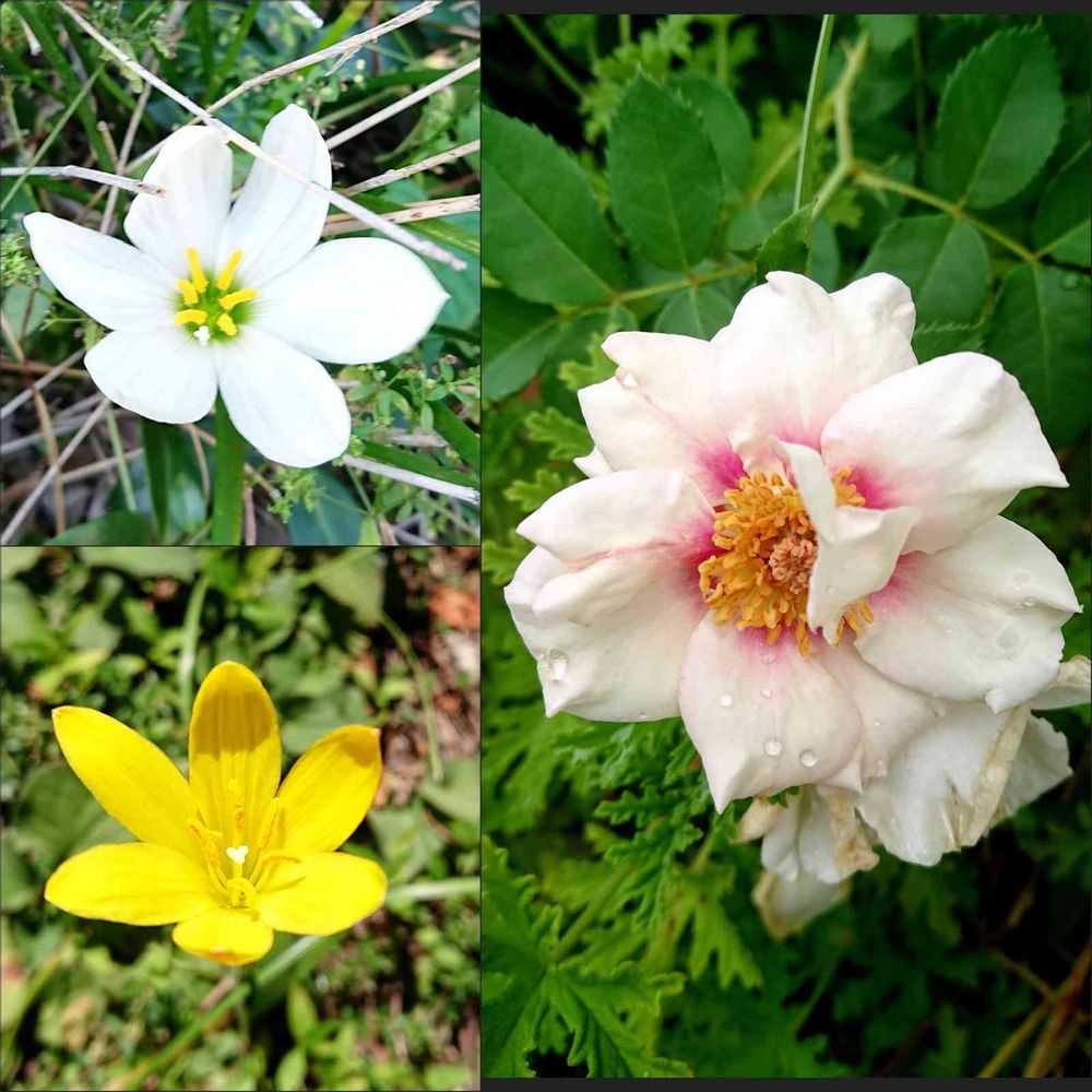 庭で白や黄色のゼフィランサスがポツリと咲いています✨