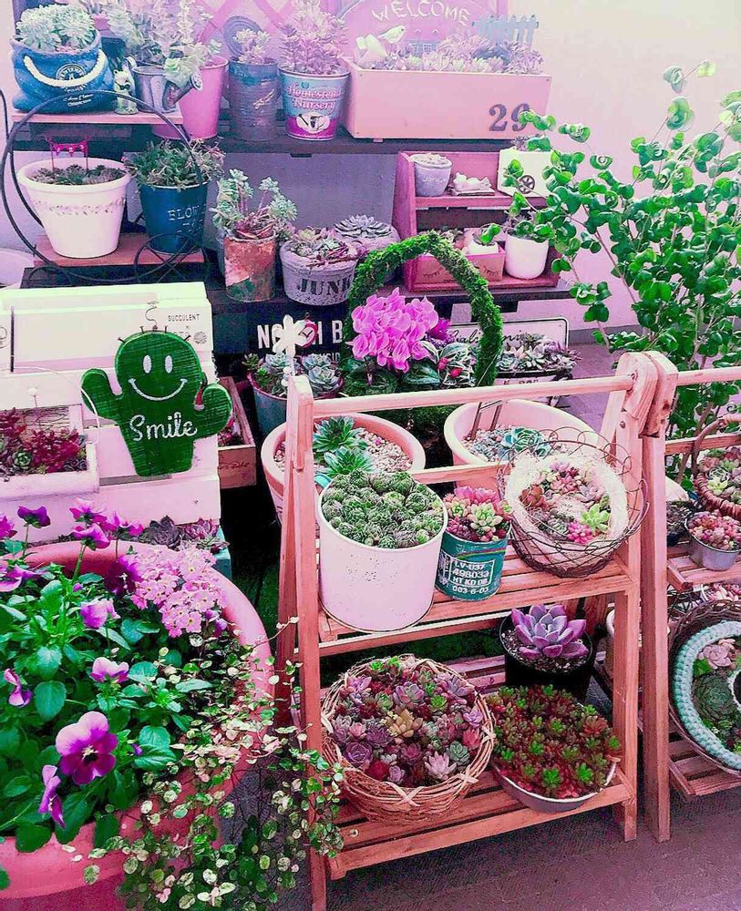 反対の板壁側にも多肉ちゃんがいっぱい(¯∇¯٥)