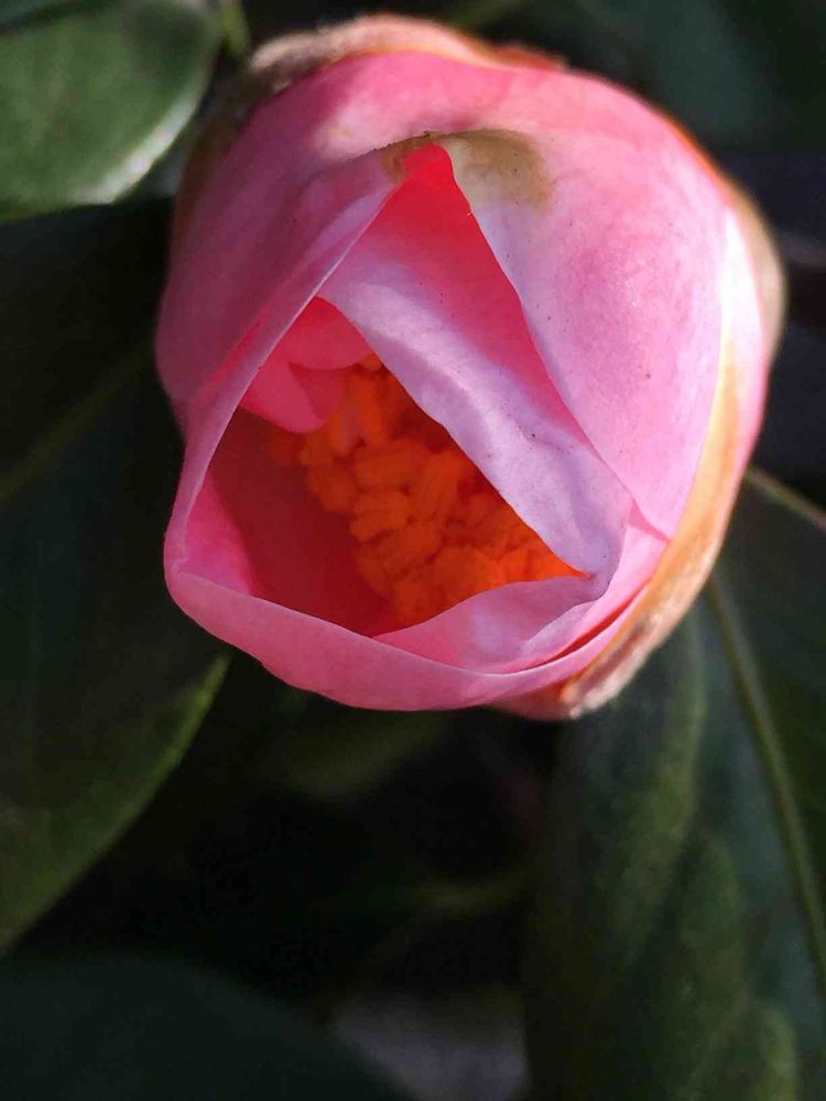 ぷっくり 少しお顔がのぞいた ピンク色の椿💖