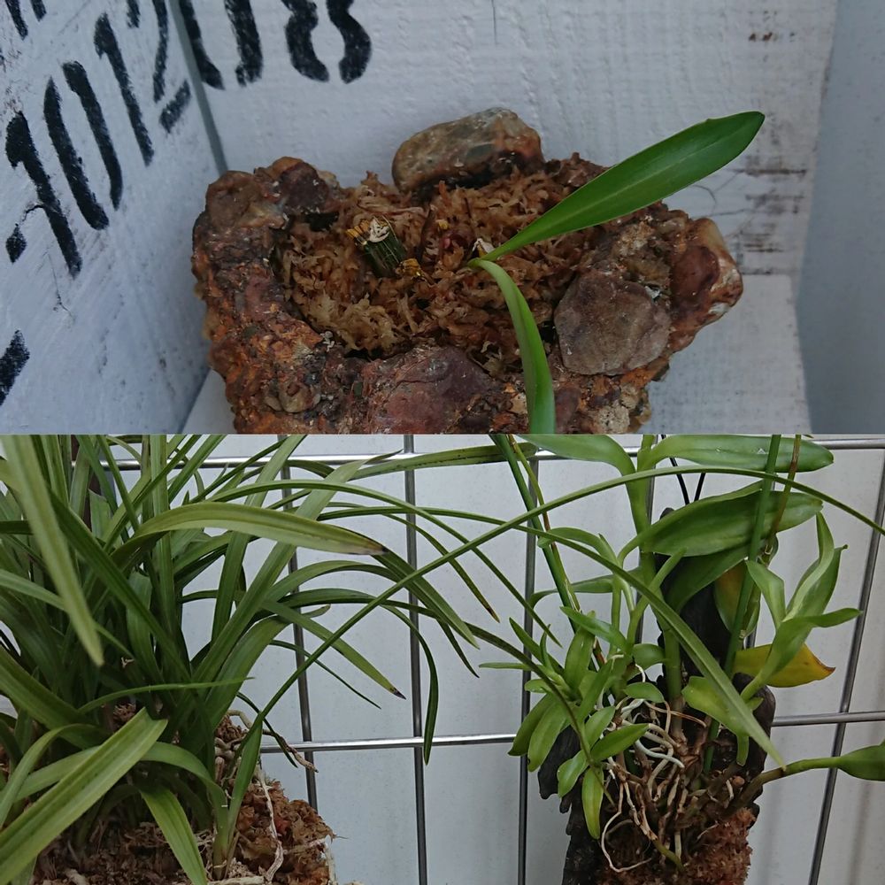 下の左のはランだと言われて道の駅で何年か前に買ったんだけど待っても待っても花が咲かない😞