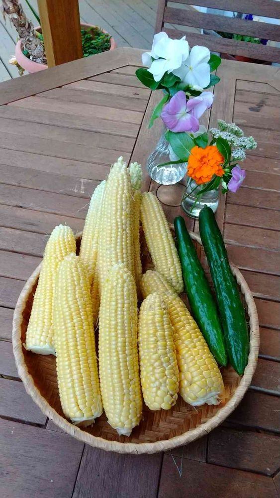 とうもろこし🌽ハクビシンにも気付かれず、沢山収穫出来て良かったですね😆👏