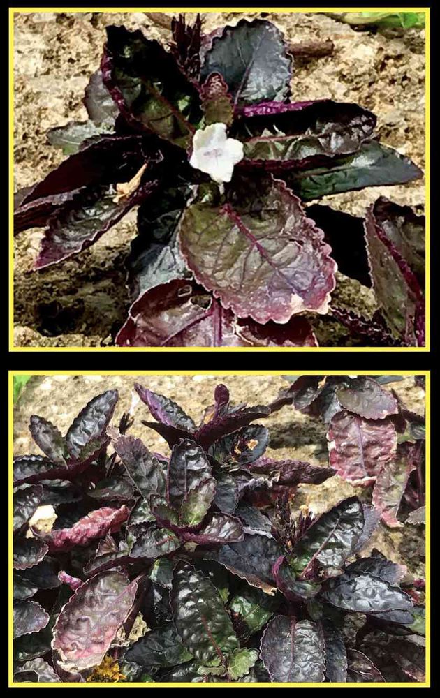 マレーシア原産でキツネノマゴ科イセハナビ属の常緑多年草で濃い褐色の葉に白い花が咲きます