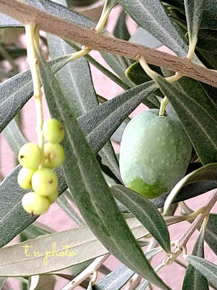 オリーブの実って、写真の大きい方みたいに一個づつなるものだと思っていたわ👀