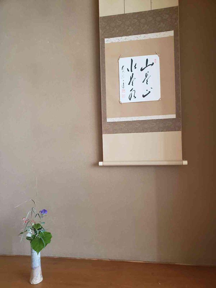 さんへ 次回から空間込みの写真を投稿します。同じ場所で変化が乏しいですが、、、でもお軸は大切な道具の一つです。