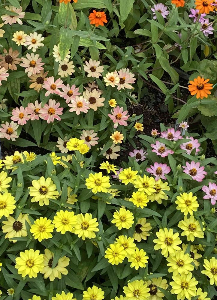 色とりどりのジニアが、何かおしゃべりしながら咲いてますね🥰