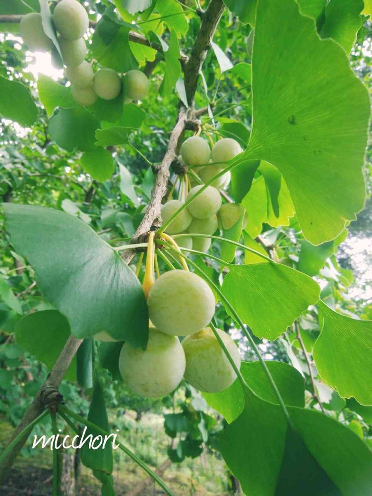 お隣りに植えてあるイチョウの木に銀杏が、たわわに実ってます。👀
