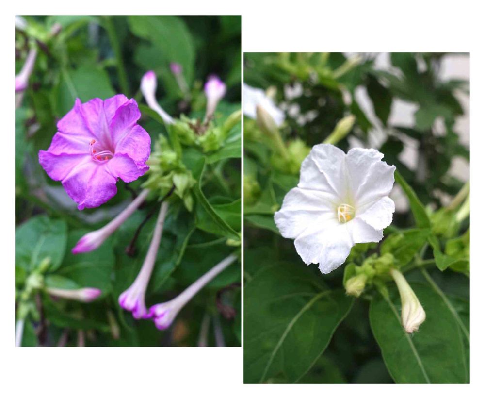 わぁリッキーさんちにも、オシロイバナが2色かわいく咲いていたのですね✨🎉🌸🌸🌸🎉✨👏👏👏