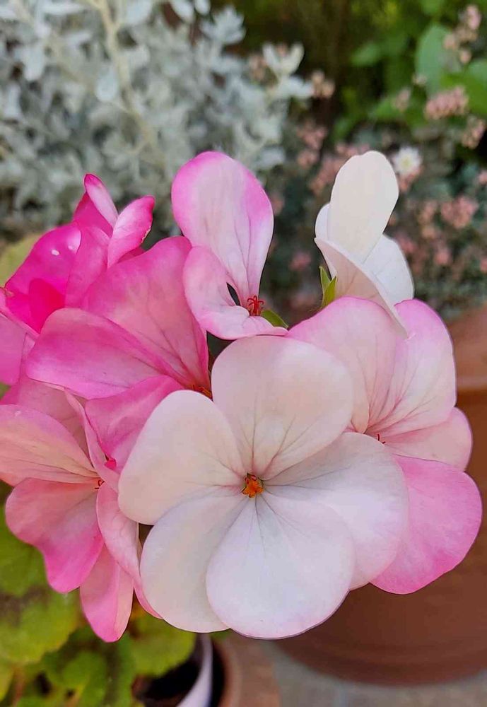 この移り色ゼラニウムは咲き始めは清らかなホワイトで、咲き進むとラブリーなピンクに💗