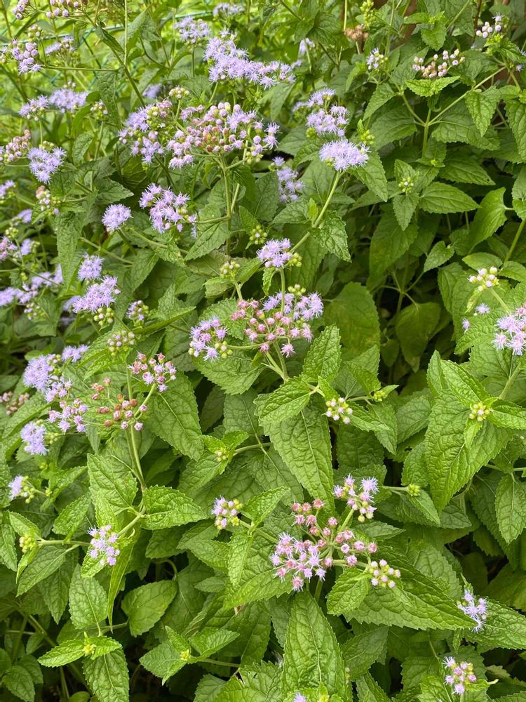 青色フジバカマでした。北アメリカ原産でセイヨウフジバカマとかユーパトリウム セレスチナムと呼ばれたりしています。花期は7月〜10月で暑さ寒さに強い花です。