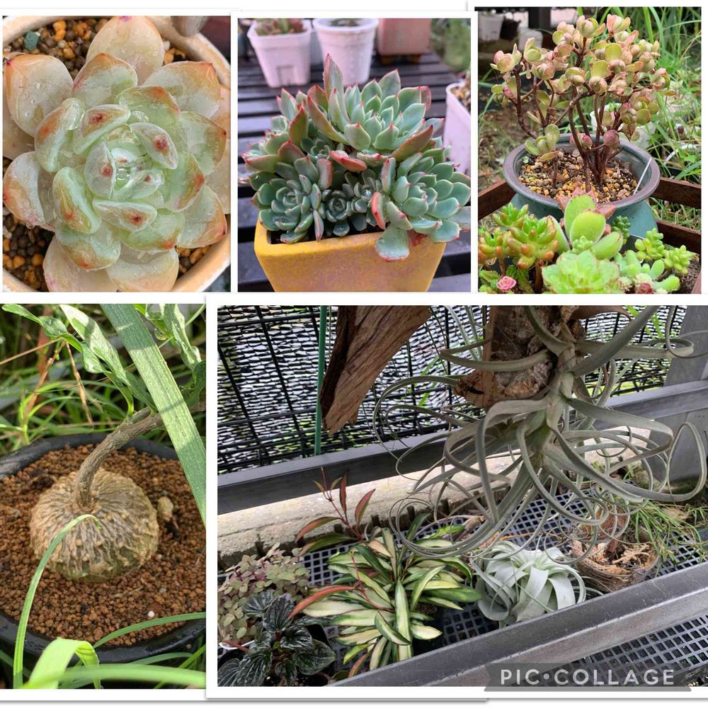 こんばんは☔️☁️→☔️ 多肉さんの出し入れで少し☀️が出るかな〜って、風を求めてまた外に出して濡れまくり😑 火星人さんが行方不明で探したら草が伸びて隠れてました〜😅 まるまる🪴 エアープランツさんたちも遮光下、椅子の下がお気に入りな感じ🙄 部屋に飾りたいけどうちは何かと難しい…🥲