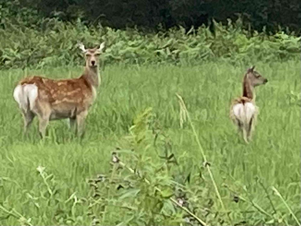暴風雨が収まり採草地のチェックに行ったら❤️のお尻の可愛い親子に会いました😊