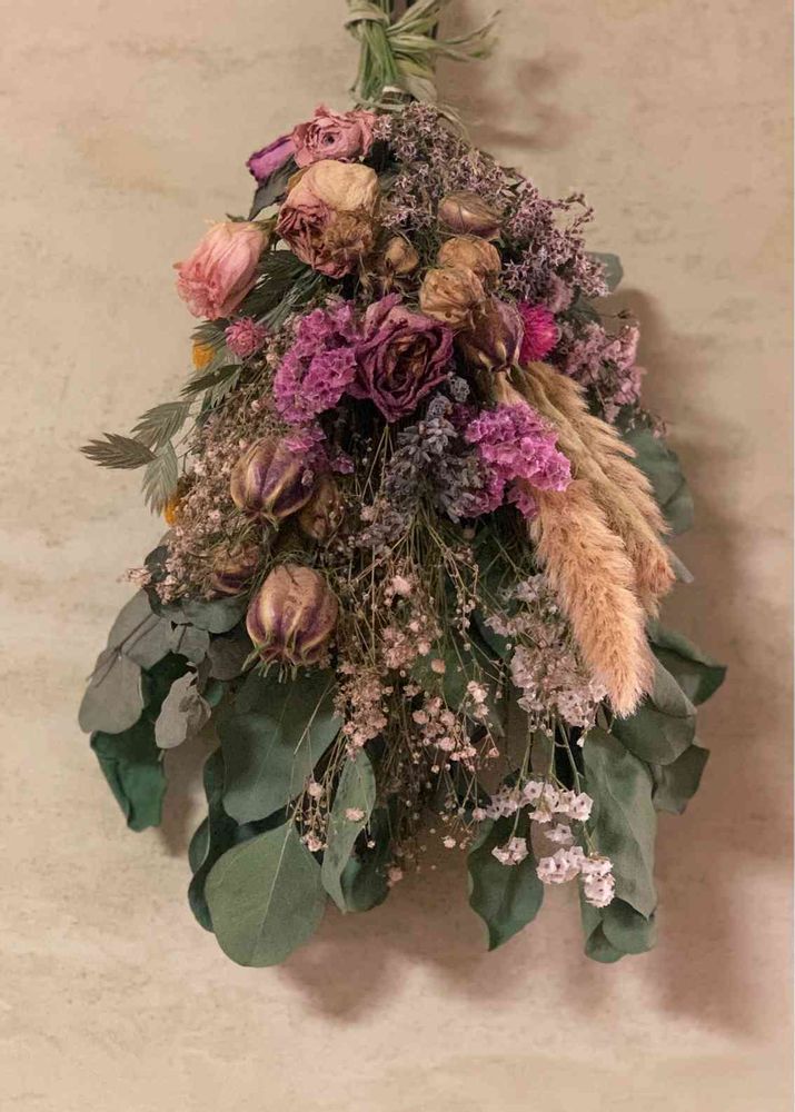 今日は、学校で使ったお花をドライにして貯めていたのを集大成としてスワッグ にしてきました。