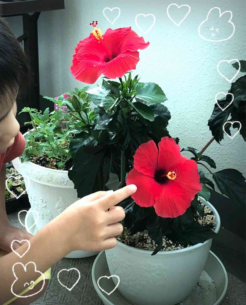 バルコニー/ベランダ,ハイビスカス,赤い花の投稿画像