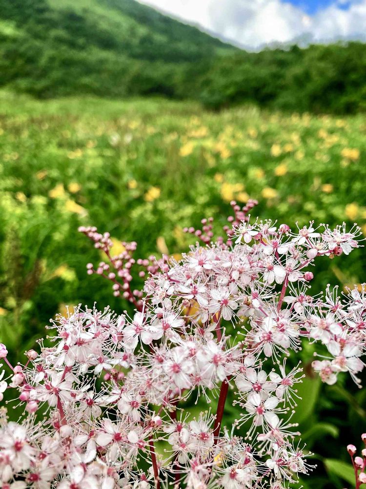 ⛰、高原に咲くシモツケソウ、ピンクと白と