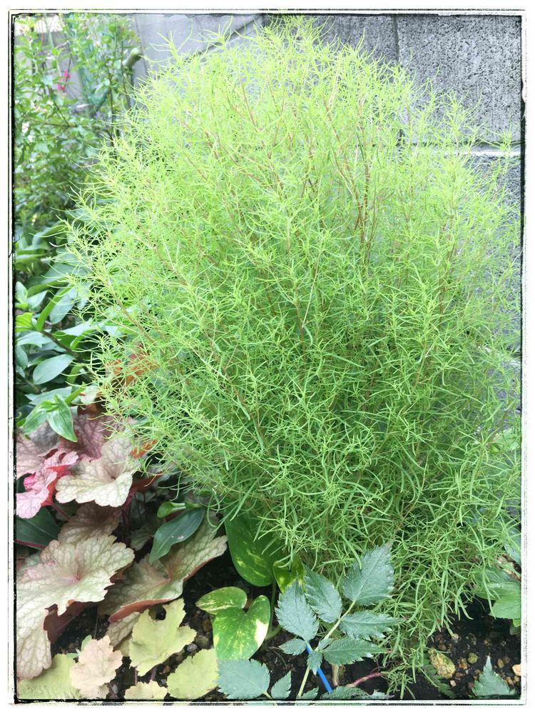 畑から引っ越してきたコキア、半日陰で大丈夫かなと思ったけど、元気にボーンとしてきました😆