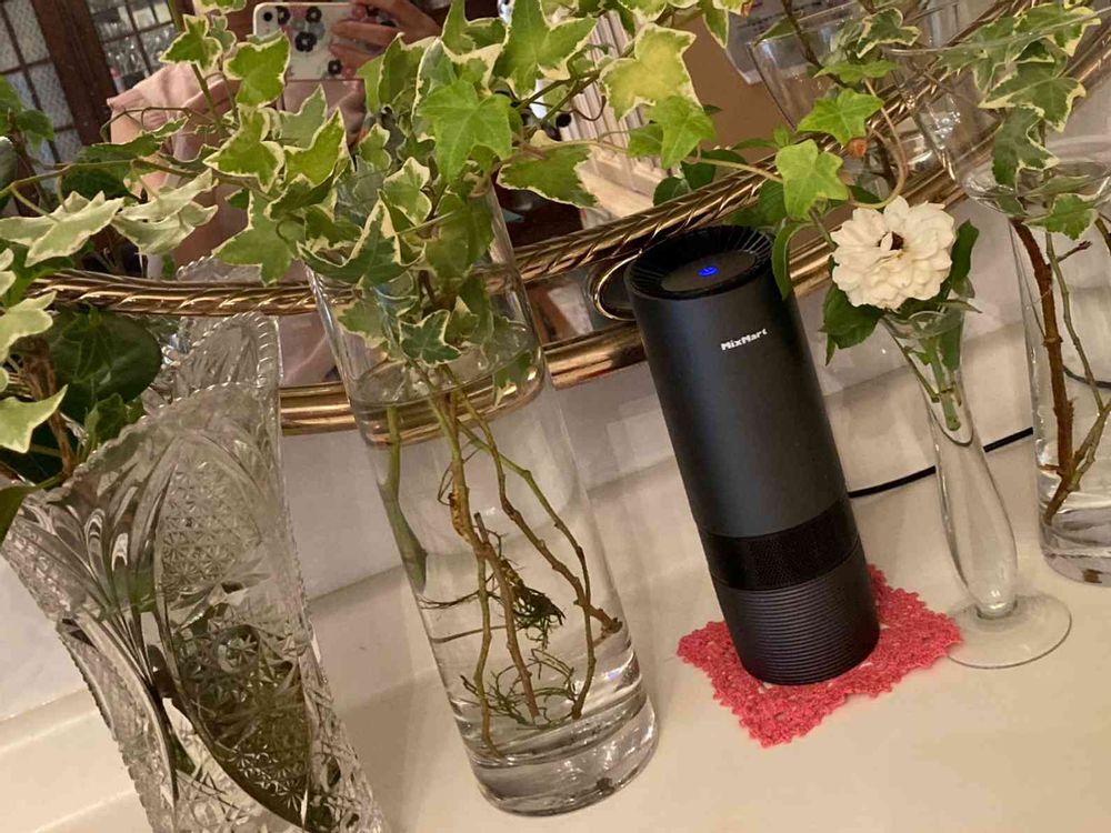外は…暑い😵ですね〜お庭のアイビーを剪定しましたのでアイビーでお部屋を涼しげに🎶部屋はグリーンとバラちゃん🌹&エアコンフルは連日回転!😅