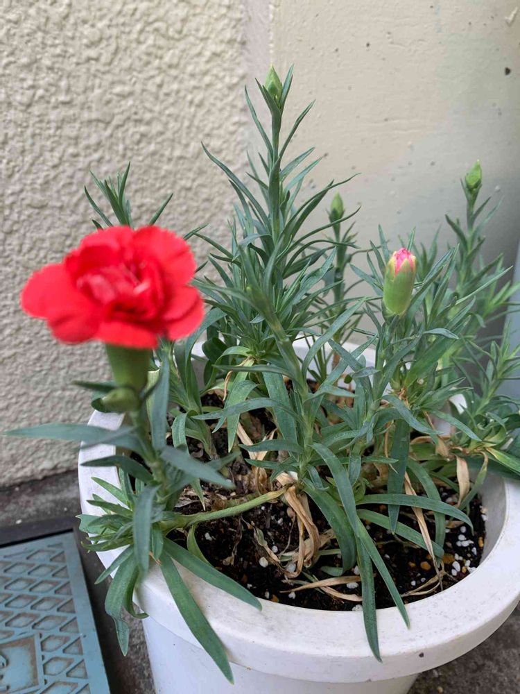 婿に母の日に頂いたカーネーション❗️足元を風通し良くする為にチョキチョキ チョキチョキと調子に乗って✂️👀 それから10日は経ってないかと思うが花が咲いた❣️