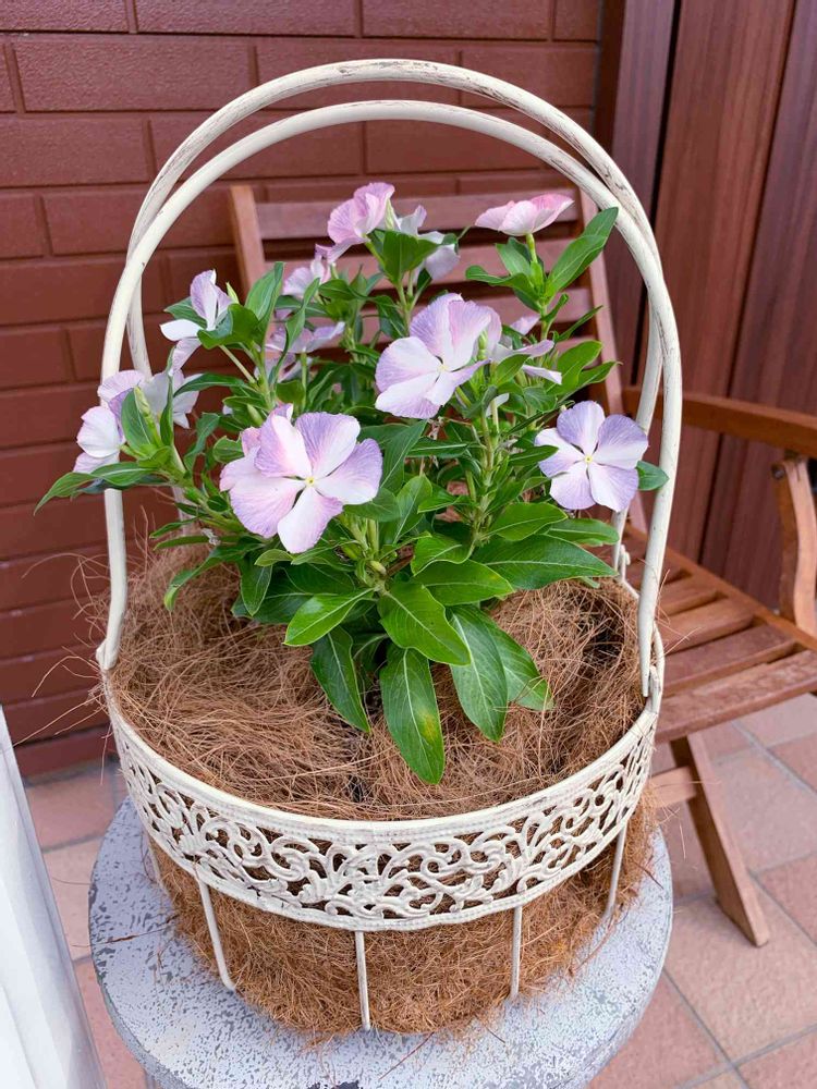 オシャレな可愛い籠に、可愛い紫色のニチニチソウ💕