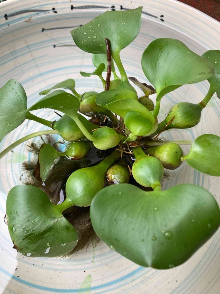 今日小さい川?大きい溝?に、どんぶらこと、布袋草が流れてきました(≧∀≦)、あわてて傘☂️ですくいました。よく見たらミミズ🪱が💦