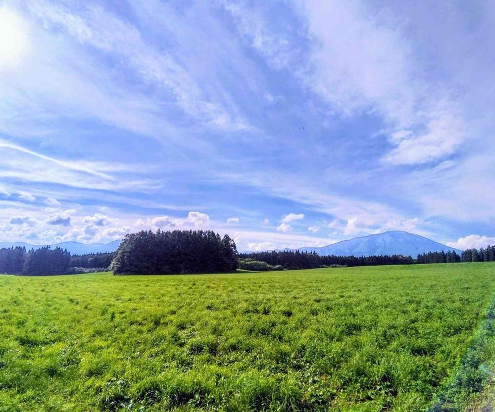 先日の晴れ間に撮った、輝く草原に映える岩手山