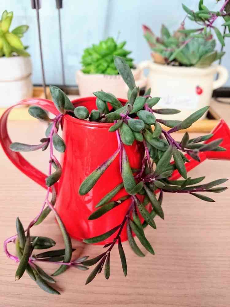 紅葉しない🌿我が家の多肉ちゃんに代わってDAISOの赤いじょうろが少し暖かみを出してくれてます💚