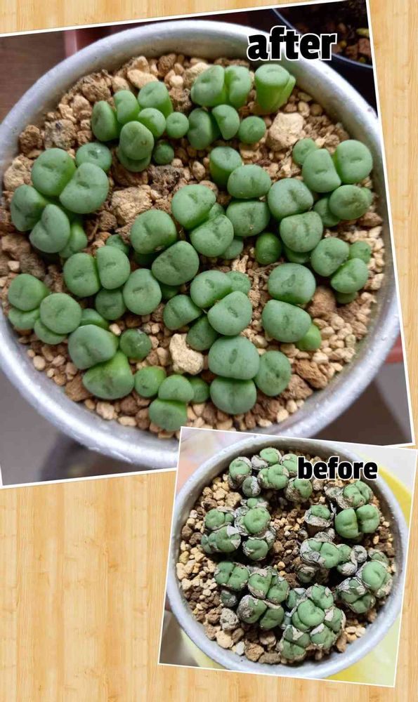 雨続きなので室内に入れたついでに、古皮を取って株分けと植え替えをしました。