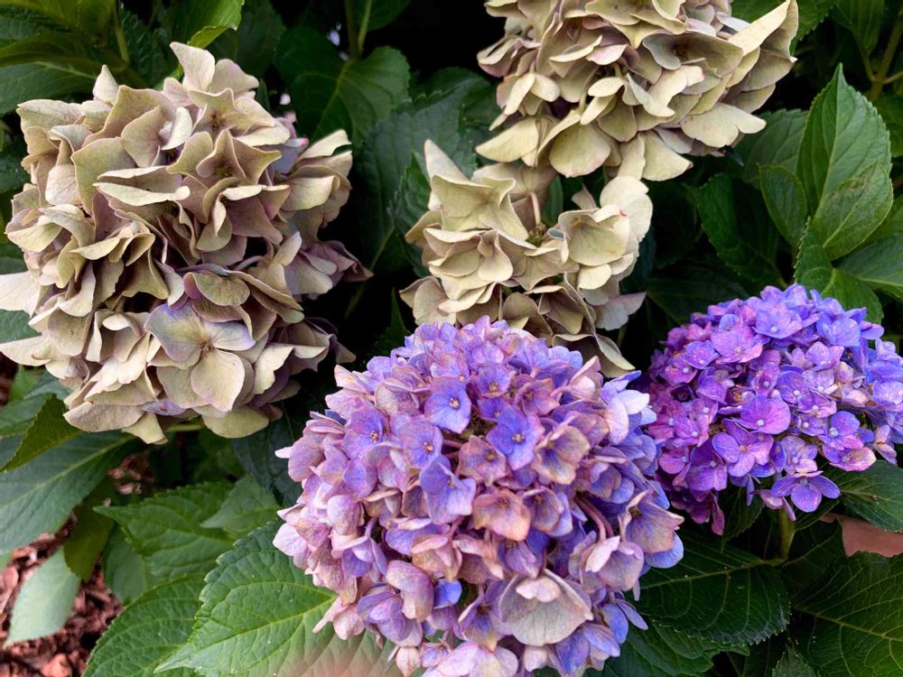 紫陽花さんは、フレッシュカラー(ビタミンカラー)も去ることながら、この時期になってからの、色褪せたアンティークカラーも魅力的なんですよね😍✨
