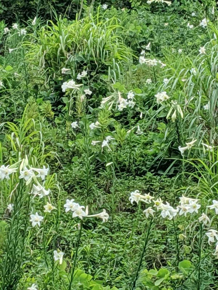 白いユリ、道の側面にホント沢山咲いてますよね😊