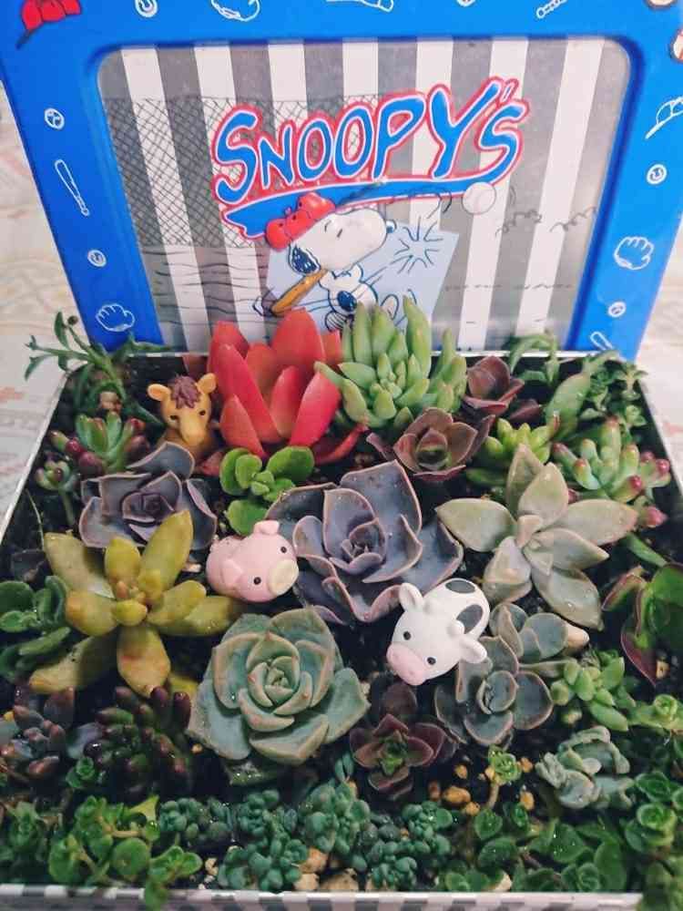 スヌーピー缶で寄せ植えをしました😘