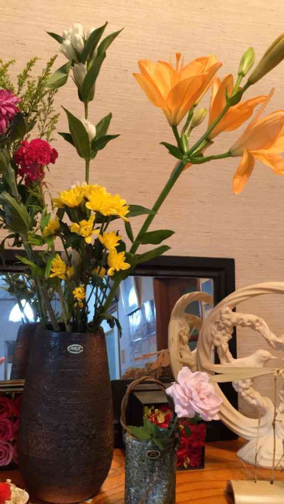 最近主人が床の間と玄関にお花を買ってくれています^_^♡
