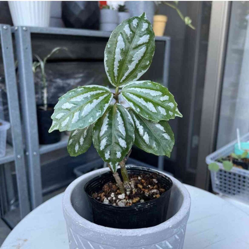 緑の葉に、シルバーの斑がエキゾチックな、おしゃれグリーンです。