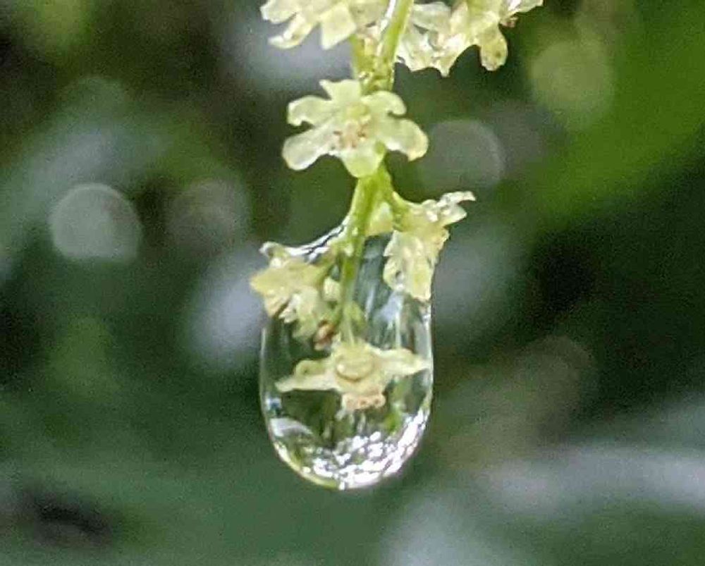 オニドコロなのかヤマノイモなのかアオツヅラフジなのか…私には分からないお花が雫を纏って…。💧