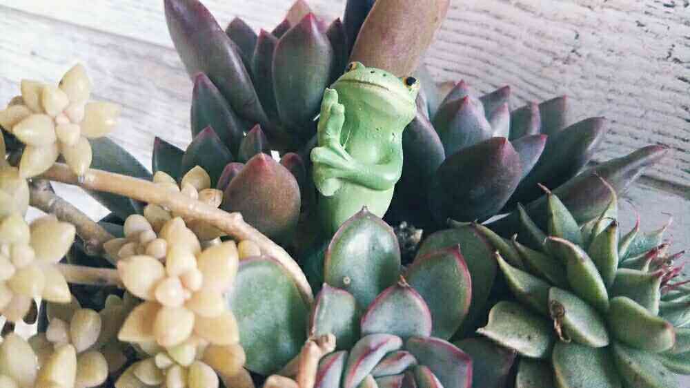 パッと見👀同系色だからカエルちゃんの形の🐸芽が生えたみたいに見えた😅