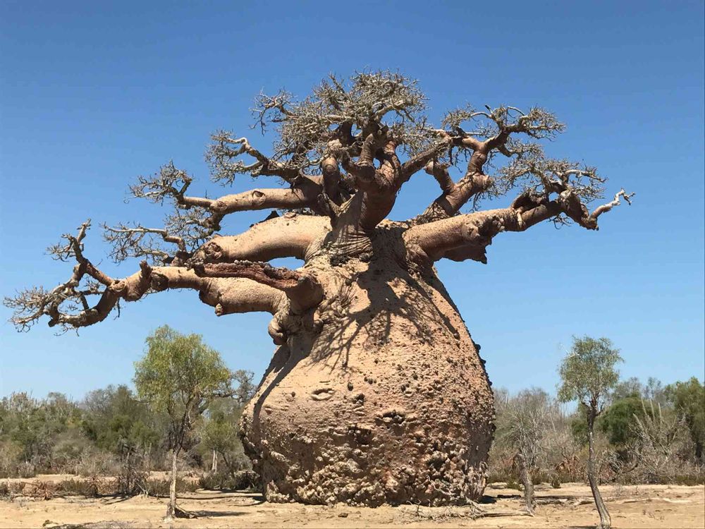 お腹あたりが異常に膨れている通常妊娠バオバブ。グランディディエリという種類なんだけど、環境条件によって本当に色んな姿を見せてくれる。