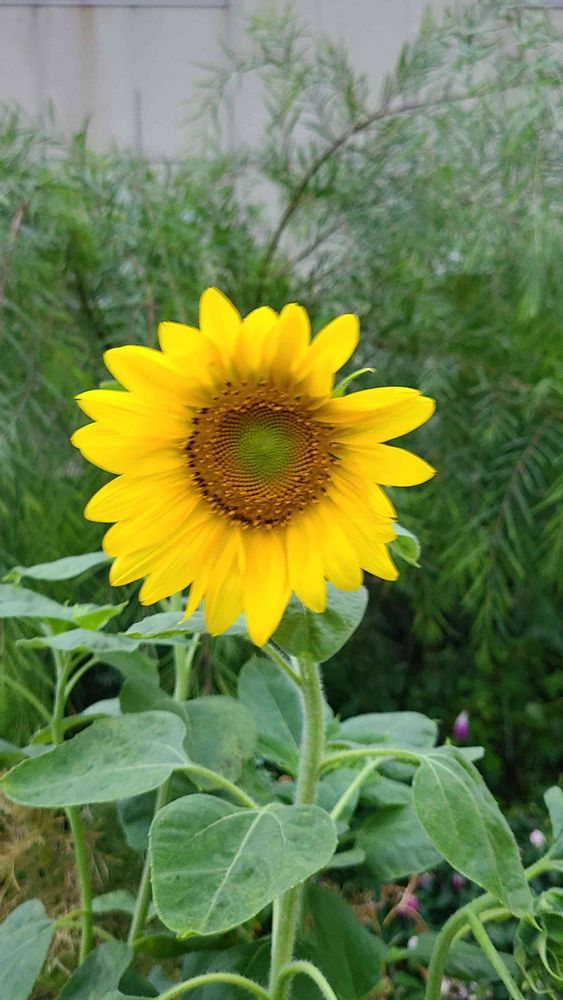 雨の止んだ間に、もうひと鉢のひまわりが、咲いたので、撮りました。