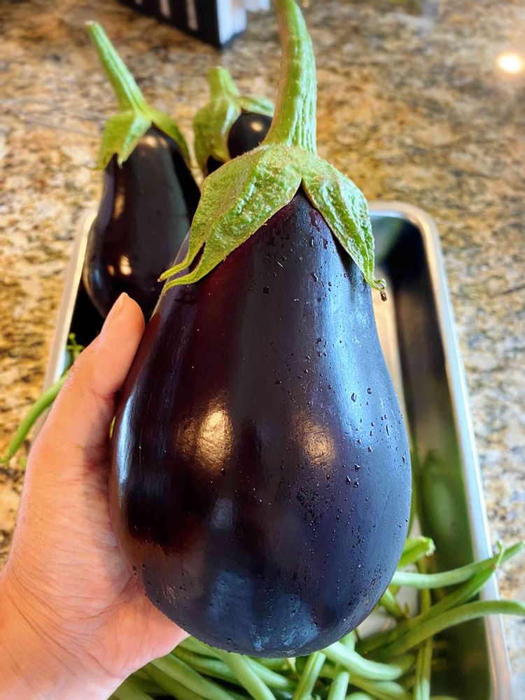 さん、気候も土地もあるかも知れませんが、育て方もきっと凄く上手なんだと思います😄それに加えてうちで採れる茄子は「Japanese eggplant」まさに日本で一般的な茄子なんですが、これは違う種類なんですよね。お店にもよく売ってますが、大きくて食べ応え十分です。