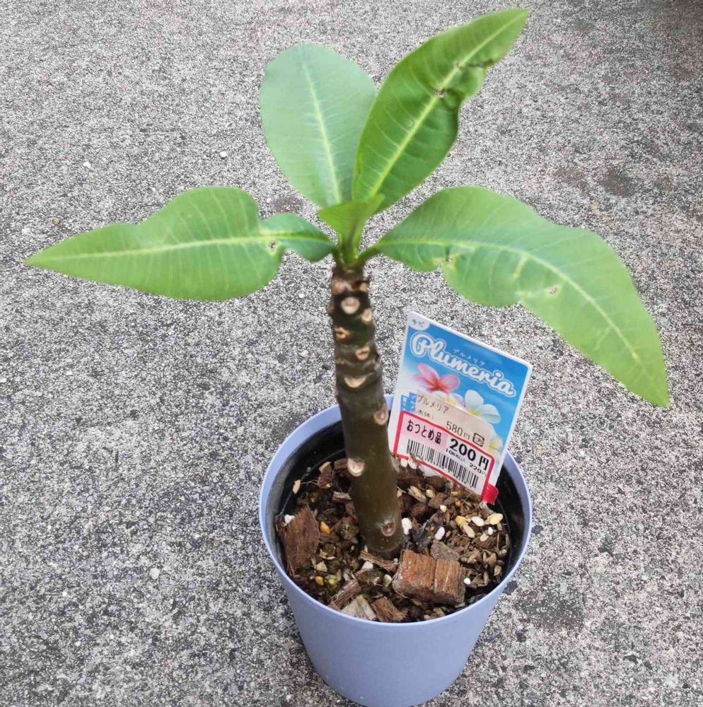 スーパーの花コーナーにチビプルメリアが値切りシール付きで居りましたよ~🤣