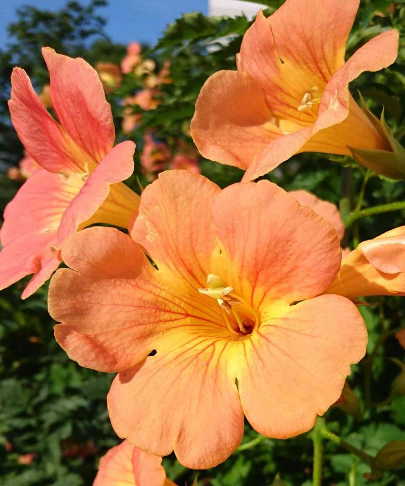 晴れた日のノウゼンカズラ、オレンジ色が鮮やかで綺麗です😍🧡✨