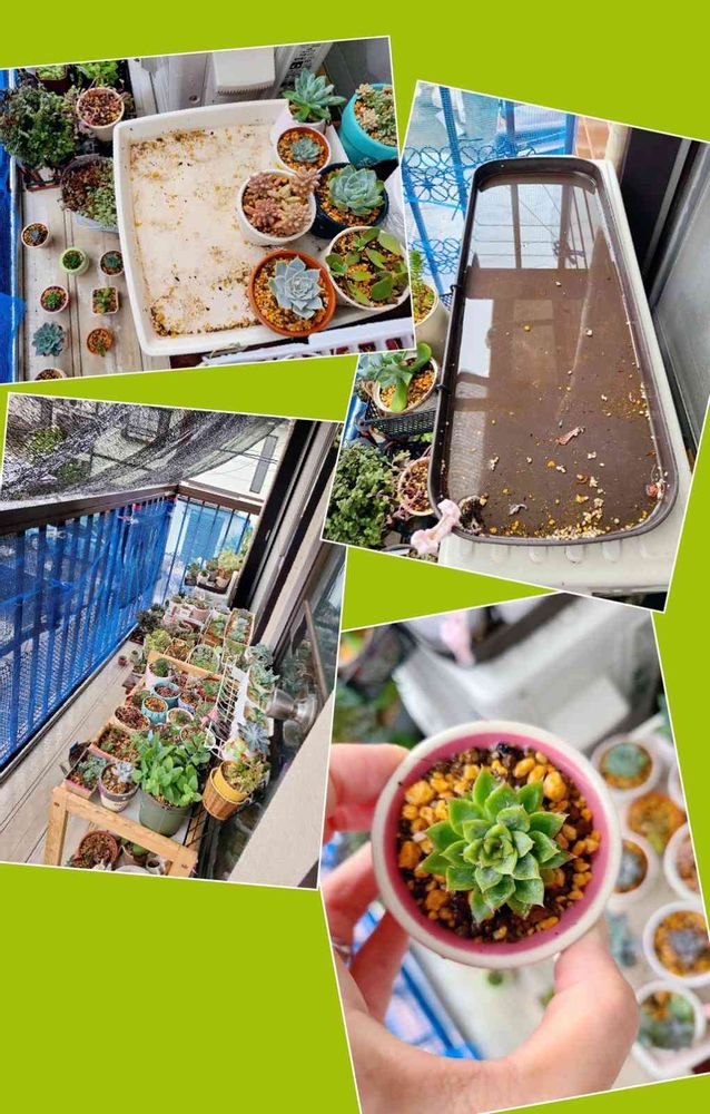 トレーにまとめてたちび多肉達が、底面給水状態💧