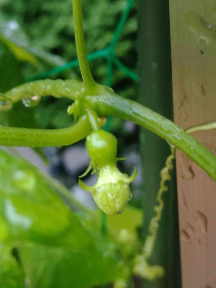 これから咲くのか咲いたあとなのか・・初めて育ててるのでよくわからないんだけど、実らしきちっちゃい丸いのが既にカワイイ💚