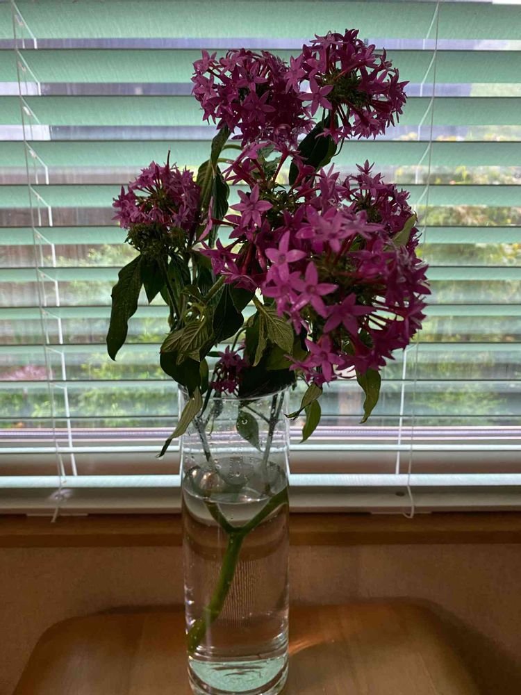 12日からの雨続きで薔薇の鉢植えだけ軒下へ避難🥀ペンタスは冷や飯を食わされ豪雨のなか耐え忍んでいましたがついに根元からポキリ😱😭今朝救出🚑+🏥泥を水で洗い流し花瓶に宿を変えました。お疲れ様でした✨