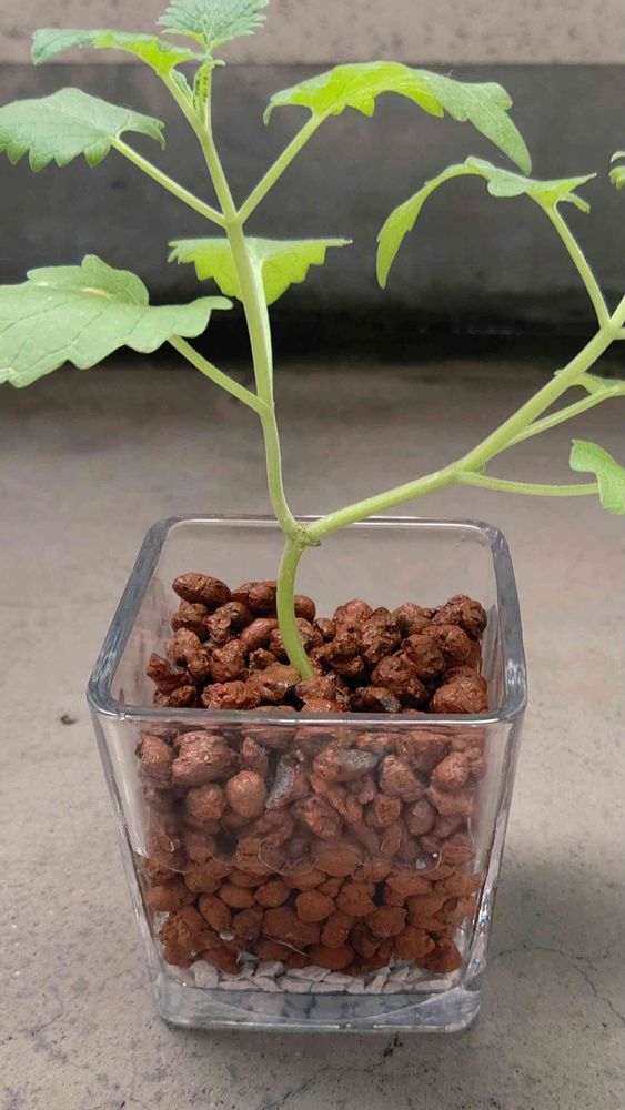 花瓶に活けていたキャットニップ🌱根っこが出てきたのでハイドロカルチャーにしてみました。