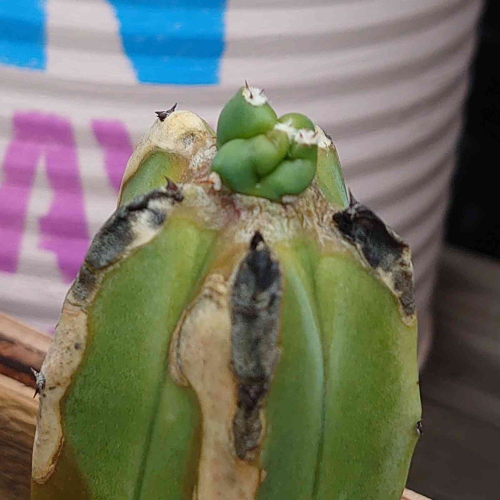 柱🌵の頭に新芽って事は下は駄目になってるのかな?🤔接ぎ木🌵みたいで新芽がどうなるのか🤭このまま様子見ることにした😉