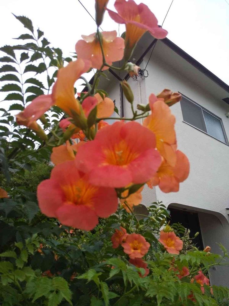 ノウゼンカズラ🏵️🌿…白いお家の壁に映えてました…