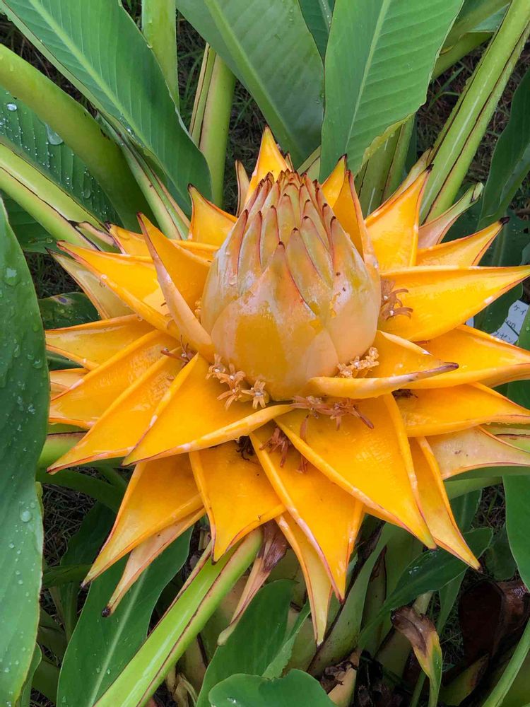 正に、地面から湧き出た金の蓮。芭蕉の葉の根元に花を発見した時、思わず笑みが溢れました😆