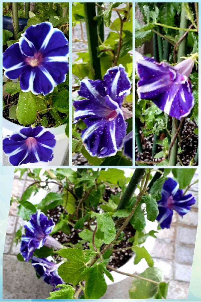 朝顔さん、この雨風の中で健気に咲いてエライですねー🎵