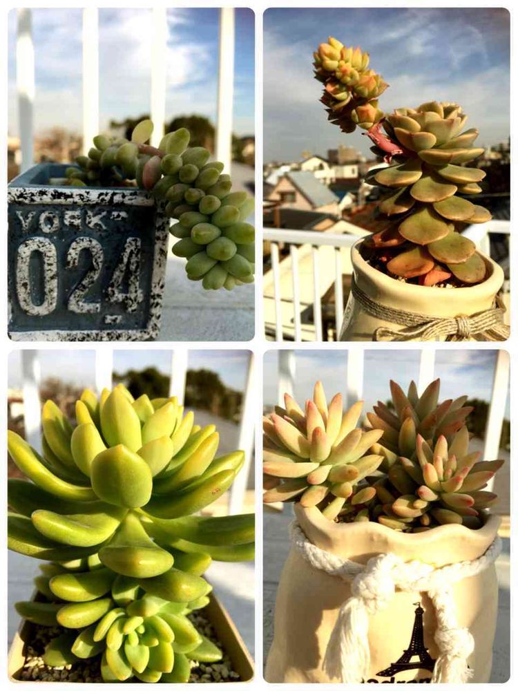 カット苗でお迎えした多肉ちゃんたちです。7/30投稿時と比べるとだいぶ成長しました。紅葉しているのもあります。緑牡丹は花芽をもって一ヶ月位経ちますがずーっと蕾のままです😆