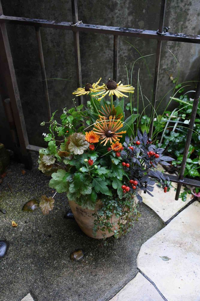 エキナセアとキクの寄せ植え